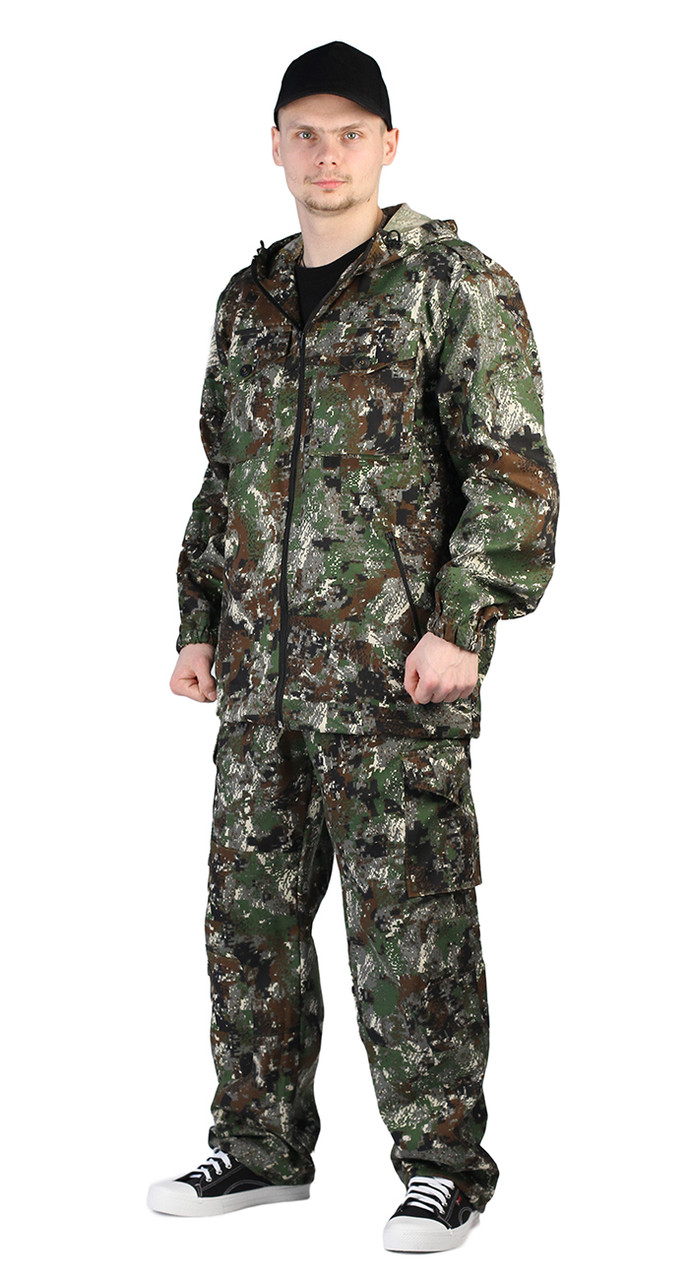 Универсальный летний костюм для охоты, рыбалки и активного отдыха, состоит из куртки и брюк.